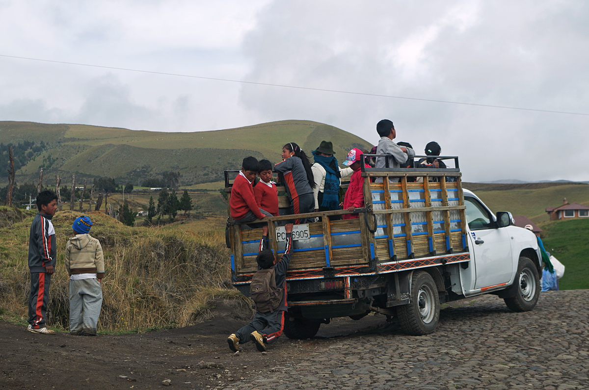 We were very fortunate to have St. Louis native David Meyer as our guide to Cayambe Volcano. David was hired on our behalf by Jaime Pallares, the manager of Molino San Juan, where we were staying in Cayambe. Jaime wanted to be sure that we had the best guide possible, and David was the answer. As a native American, David was fluent in English and the source of a tremendous amount of information about both the local population but Ecuador in general. In addition to recently beginning his services as a local tour guide, David is without doubt the most accomplished photographer of the Cayambe Volcano and has worked for the past 12 years as a missionary based in Ecuador with Crossworld ministries. He is an all-around good person whom we could not more highly recommend. In addition to offering a ride to school children, we took time to extricate drivers who were hopelessly stuck in the mud while trying to climb the mountain road without even four-wheel drive. David’s go-anywhere vehicle is a Toyota Hi-Luxe (only sold in South America and Australia) 2.5 liter turbo diesel, with ARB front and rear differential lockers among many other customizations.
