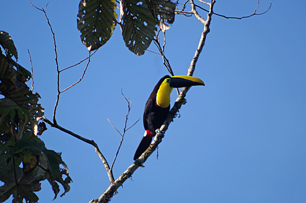 The lodge is a big, welcoming space where meals are shared in an atmosphere of camaraderie. Upstairs, there is an open third level that is used as a treetop bird observation area at 6:00 AM, followed by sunrise bird observation walks, prior to a hearty breakfast. The guest rooms are remarkable, with sturdy hand-hewn furniture, beautifully decorated in an understated and eco-friendly manner. The bathrooms are truly beautiful, with stone tubs/showers, and there are porches that provides windows into the forest below, with comfortable furniture and a hammock. Our second-level room had a particularly pretty view into the treetops.