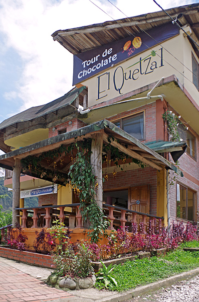 Mindo is seeking to establish a reputation as a destination for birding and a broader range of tourist activities, including white-water rafting on the Rio Mindo, a butterfly conservatory, and ziplines through the forest. Though Casa Divina Lodge concentrates on birding and more natural endeavors, the owners are at the forefront of developing a broad base of tourism appeal. On our way out, we stopped for a tour of the El Quetzal artisan chocolate company – a tasty and highly informative visit.