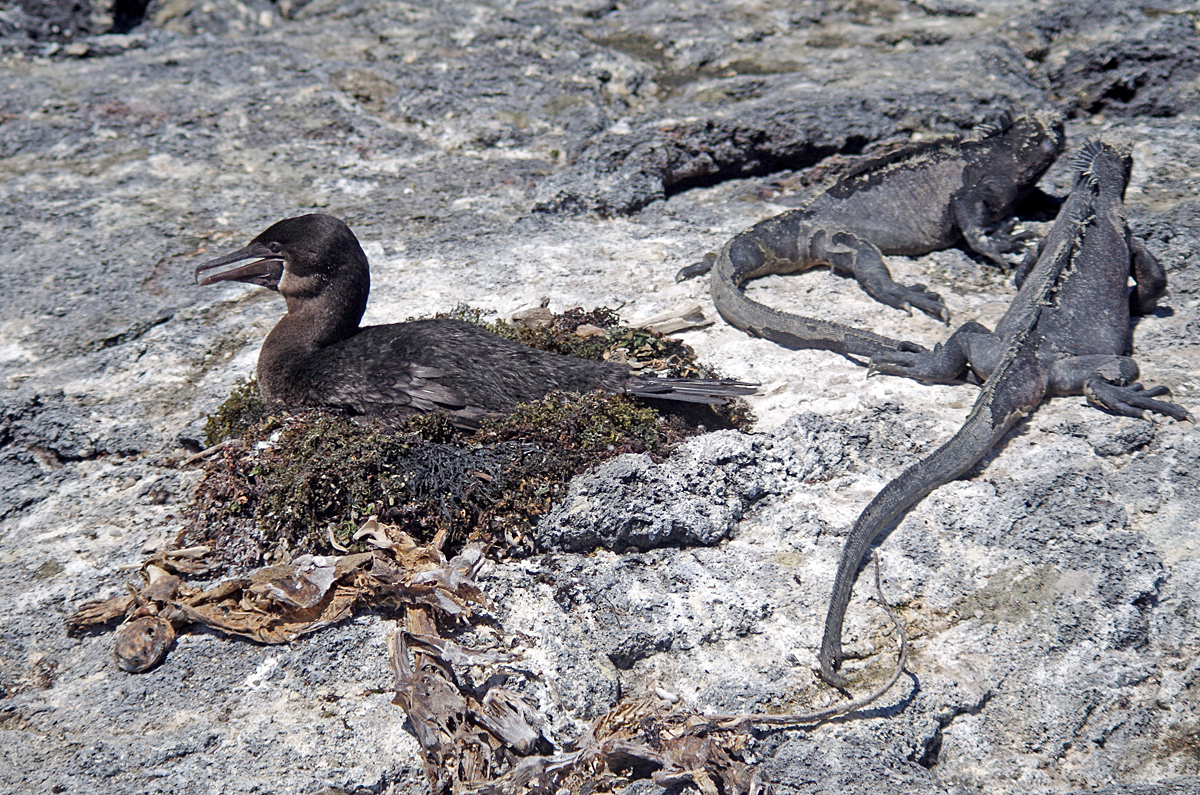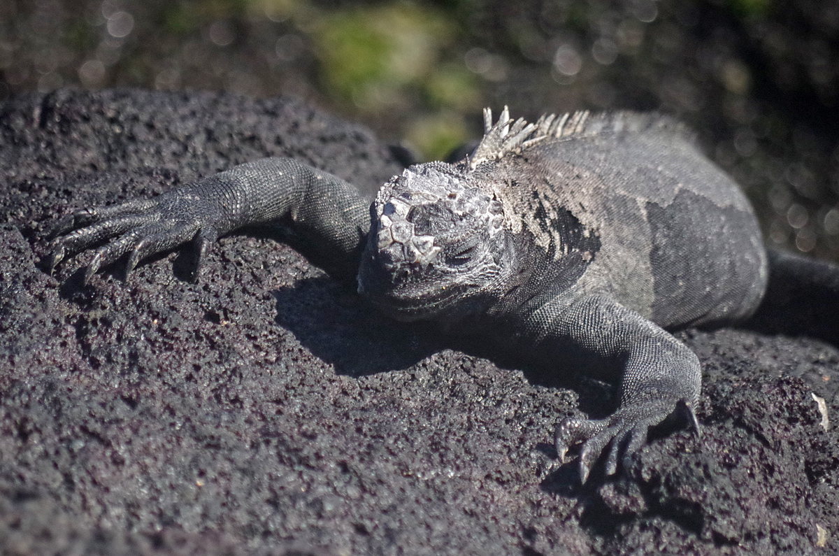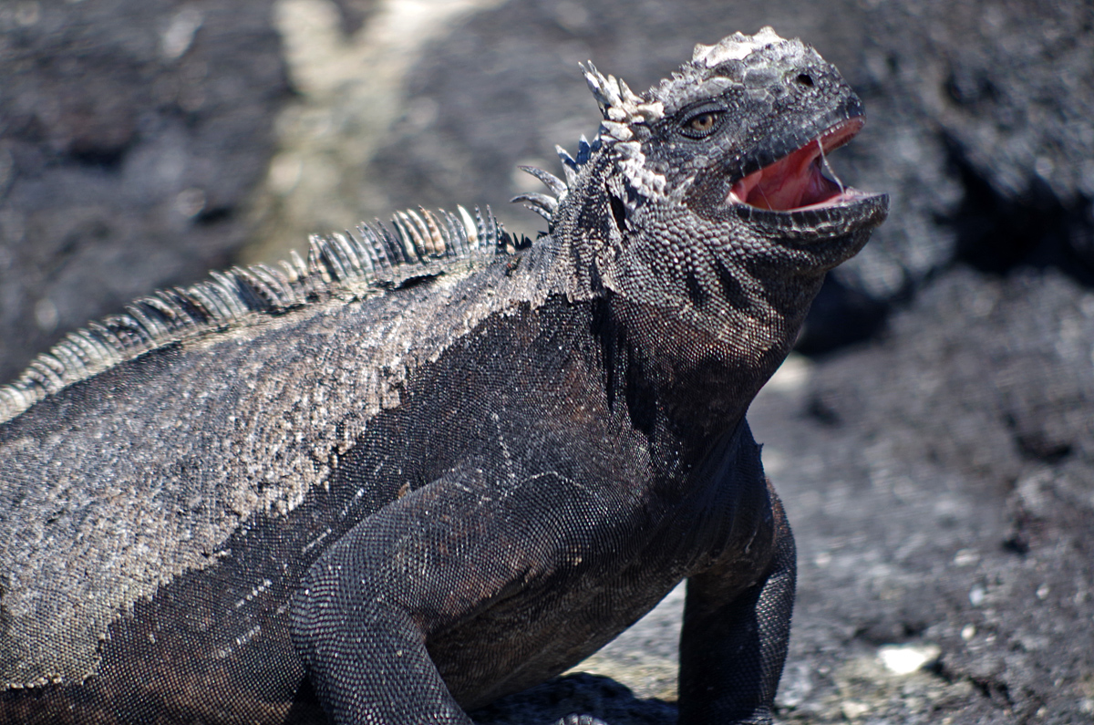 On Tuesday, we visited Punta Espinoza on Fernandina Island in the morning, and Urbina Bay on Isabela Island in the afternoon. Fernandina is formed around the still-active La Cumbre Volcano, and Punta Espinoza is home to Marine Iguanas, Golden Iguanas, Sea Lions, and nesting Flightless Cormorants, among many other endemic species of wildlife. We also saw hundreds of carcasses of Marine Iguanas that starved during the last El Niño, a climatic pattern that severely impacts their food supply. Isabella is home to the Alcedo Volcano, where Urbina Bay provided us with close proximity to Land Iguanas. On our way to Isabela came one of our two whale encounters.