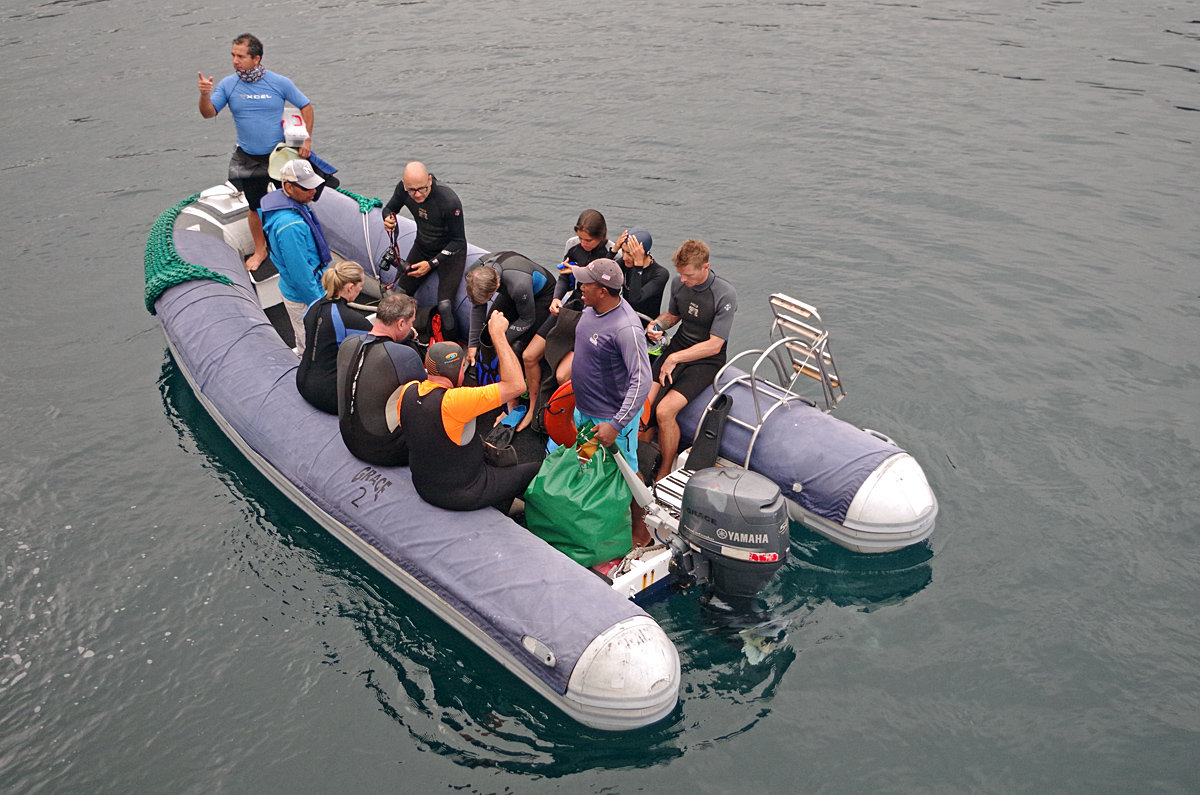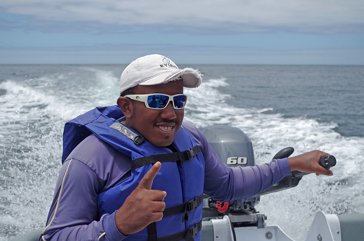 On the Grace, the twelve of us were outnumbered by a crew of thirteen, including Gustavo Andrade, who is consistently rated as one of the most knowledgeable and highly demanded naturalists in the Galapagos Islands. A native of San Cristobal, where his family owns and operates a hotel and convenience store, his knowledge of the islands is extensive and based upon first-hand experience. The other crew members, though not all highly fluent in English, were wonderfully hospitable. We all seemed to particularly like our young cruise director, Jose Silva, who was on his first official cruise. Unfortunately, his brief employment with Quasar Expeditions was terminated immediately after our trip, in reaction to some sort of impropriety that had allegedly occurred by one of the crew members.