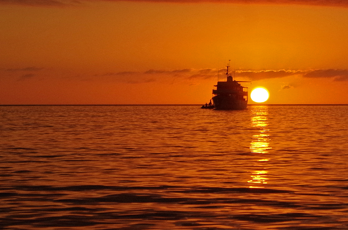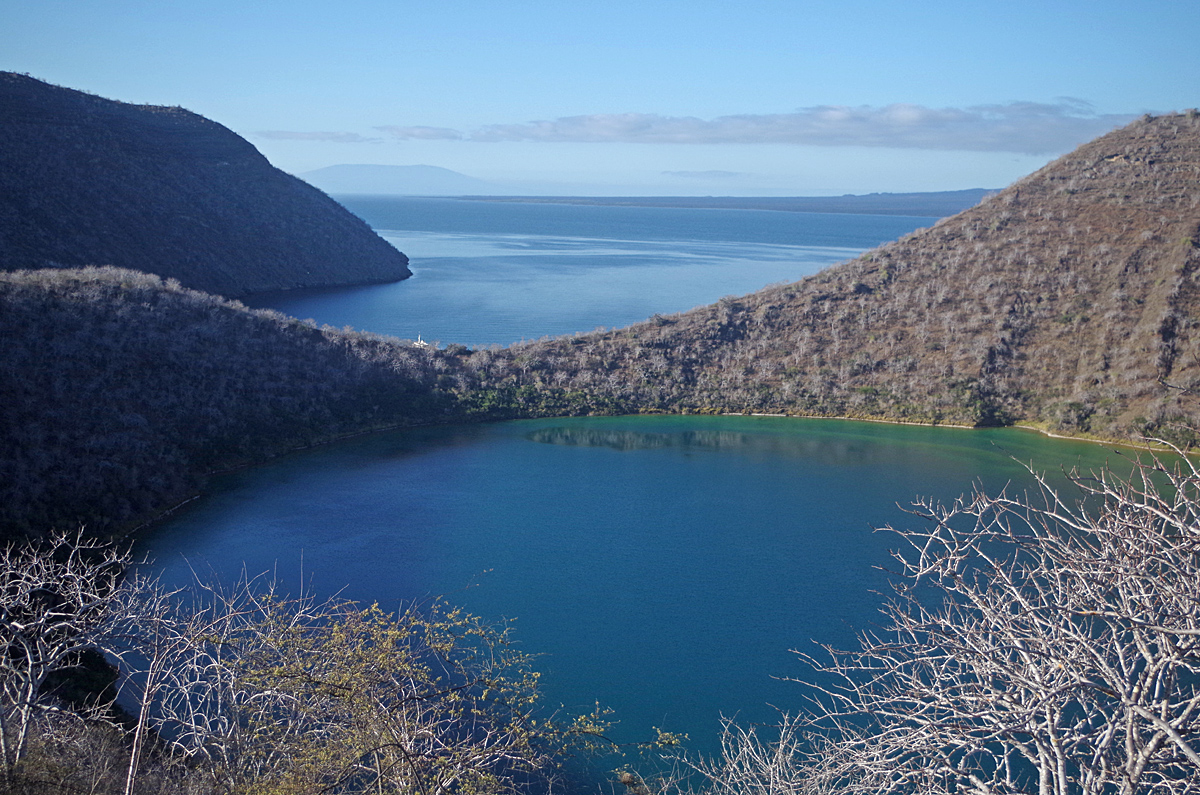 Baltra and San Cristobal are two (along with Santa Cruz) of the inhabited islands in the Galapagos, each with a larger port for ships and a small airport that is served by flights from Guayaquil and Quito that shuttle tourists to the islands. Our trip followed the route that begins in Baltra and ends in San Cristobal. Our first afternoon took us to Daphne Major Islet, where we circumnavigated the small island and got settled on board the Grace, enjoying our first of many outstanding dinners, sunsets, and star-filled nights.