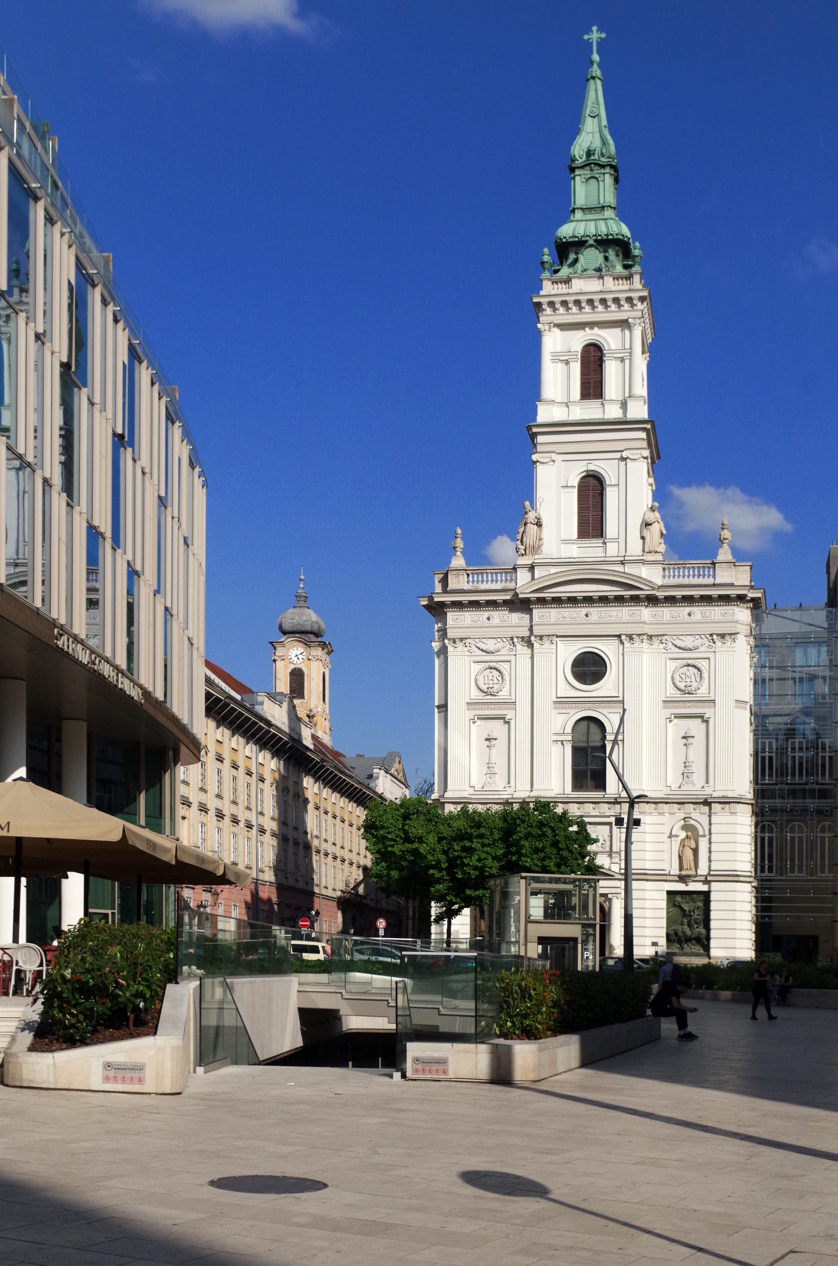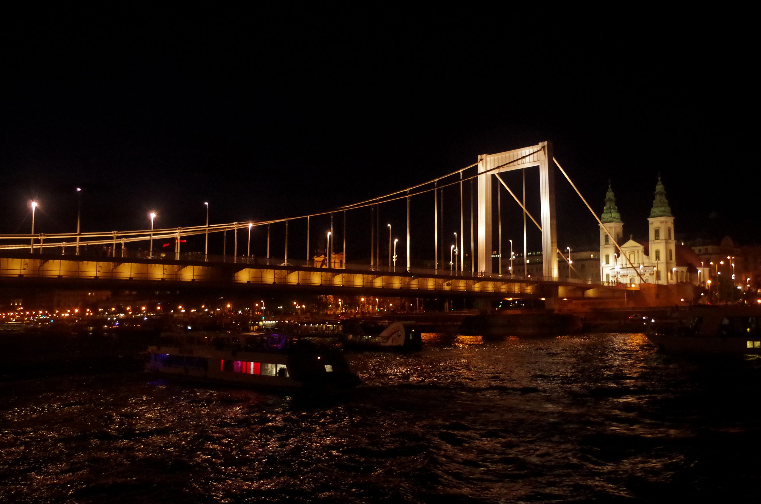 Hungarian Parliament, viewed from the Danube RiverCity Parish Church and Elizabeth Bridge, Budapest