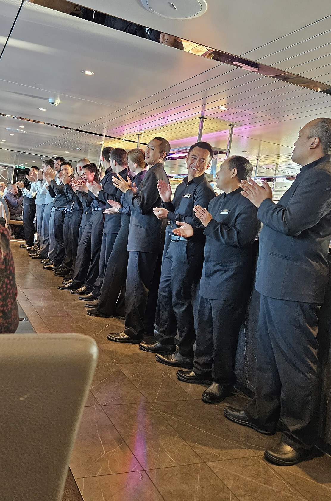 Our ship, the Scenic Jasper, carries a maximum of 163 guests, where we stayed in a Deluxe Balcony Suite on the Diamond Deck. Not surprisingly, because the company is heavily marketed in its home base of Australia, about half of the guests were Aussies, with others from New Zealand, South Africa, the United Kingdom, 10 or 12 of us from the United States, another 10 or 12 from Canada, and a smattering of other countries. Having an Australian Shepherd (back home in a kennel at the time) did not help us to understand Australian “English”, so we tended to migrate toward our fellow American and Canadian passengers. That said, I was considered a good sport for trying Vegemite on toast one morning at breakfast!